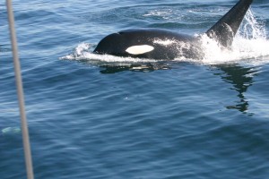 was correct and the whales must have sped northward. There they are! They’re all around you. Jumping,
