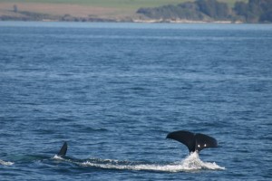 playing, making calls. Your recordings are crisp and clear because you are the first boat on scene. At one point, the whales surround your boat and there’s nothing you can do to get away from them (whale watching guidelines are to stay >100m away). You shut off your engine and the next thing you know a baby whale is swimming right under your boat. Apparently your instincts were right on today!