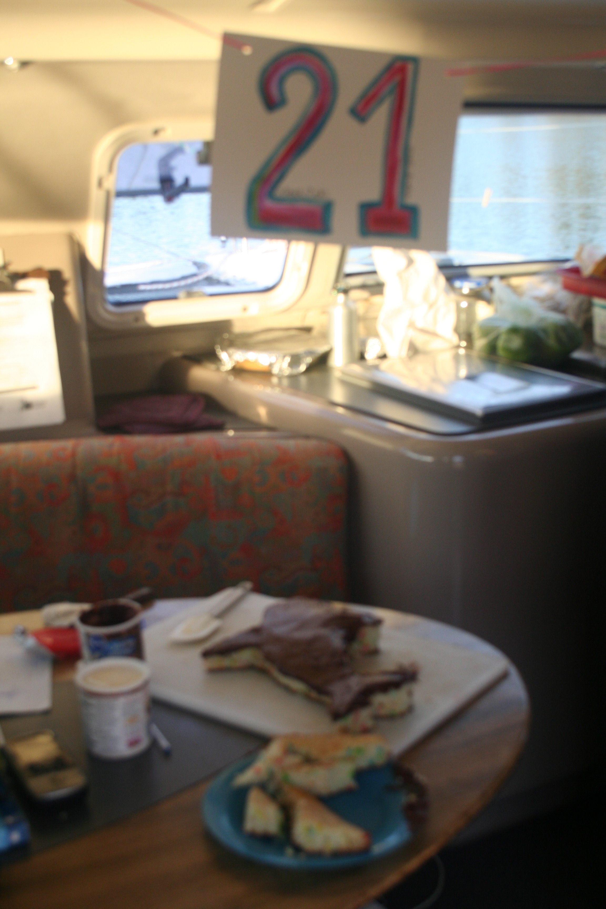 Along with my Orca cake, Leslie (Val’s wife) and I had made two shoo fly pies  the day before while I was not allowed back on the boat. Shoo fly pie is my favorite pie my grandma makes for me when she comes to visit me, it’s a tradition Amish pie and it’s so yummy! As if the cake wasn’t enough the group all signed a card with words of “wisdom†for being 21, got me an Orca wine glass, and a Bailey’s (non-alcoholic) chocolate bar as a joke since we are on a dry boat.
