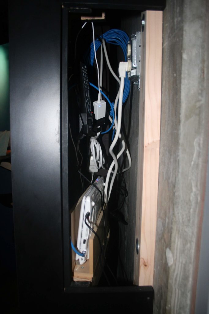 The site delivers sound through a Java-based audio player called jlGui that can handle both recorded mp3 files and Shoutcast streams while embedded and hidden within a browser window. There are also some nice photos and words to go along with the sounds. In the Aquarium, the content is presented on a 22″ monitor (using 1280×768 resolution) by an Eee PC running Firefox with the Open Kiosk plugin over Windows XP Home. A cool thing about this Eee PC is you can set it to keep running when the case is closed; that enabled us to fit it easily in the constrained space behind the mural.