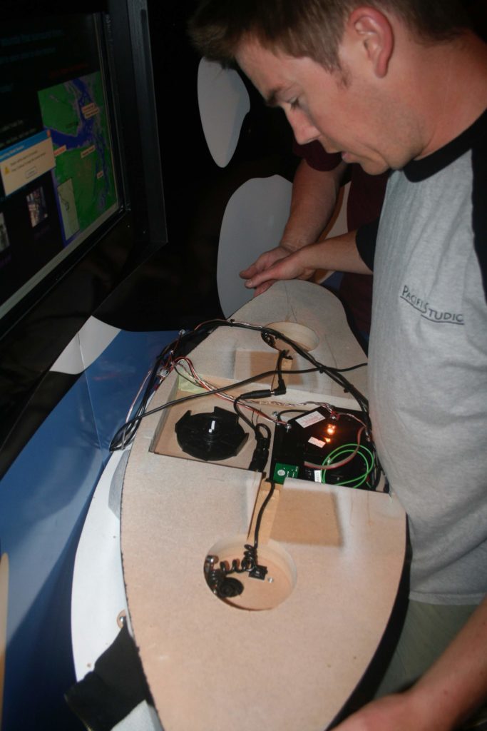 Since the station needed Internet access for the live streams, we decided to host content on-line, primarily for ease of maintenance, trouble-shooting, and future enhancement. If you don’t have a chance to visit the Aquarium and test it out in person, you can view the pages here: http://orcasound.net/sakiosk/