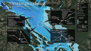Map of the Venus cabled ocean observatory, including hydrophone locations off the Fraser delta.
